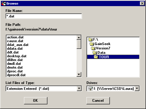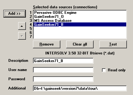 The file or folder you select is added to the Additional box for this data source. If you later want to browse to a different database or folder for this data source, double-click the Additional box. Alternately, you may click in the Additional box and then press the F2 key.