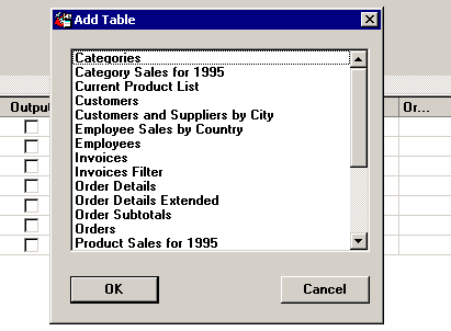 The initial screen of the SQL Statement Design utility will depend on the contents of the SQL Statement box when you clicked Build SQL.
