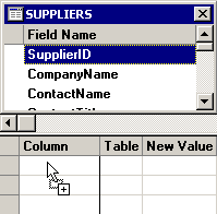 Use your mouse to click and drag an item from the Field Name list on the top half of the screen. Drop the field name anywhere in the Column column on the bottom half of the screen.