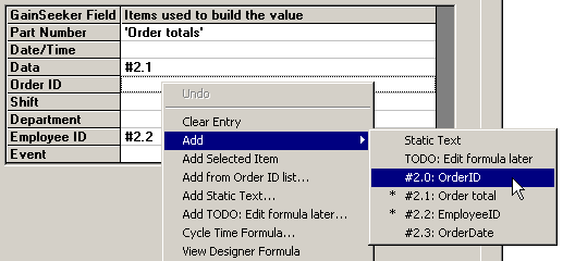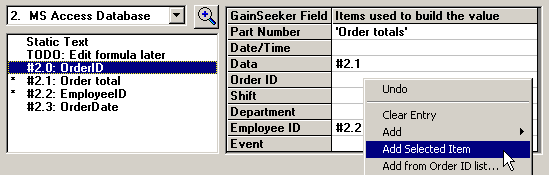 Alternately, you can click an item in the list of columns, right-click in the appropriate cell of the grid, and click Add Selected Item.
