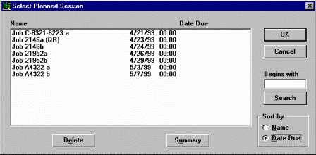At data entry, planned sessions can be sorted in order by due date, so that operators know which job must be run next.
