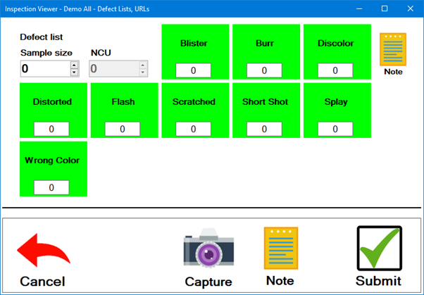 Click a defect button to add 1 to the count for that defect by 1, or right-click the defect button to subtract 1 from its count.