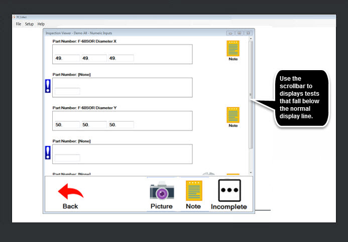 A scroll bar displays on a sub-inspection page when information or tests fall below the normal display line on the sub-inspection page of the Inspection Viewer.