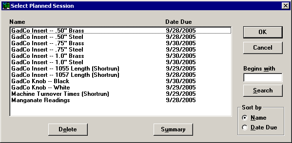 Click the name of the planned session you want to open, and then click OK.