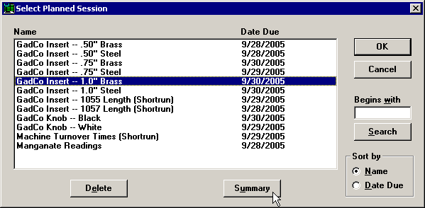 To view summary information for a planned session, click the name of the planned session, and then click Summary. (In PDA mode on very small displays, this feature is not available.)
