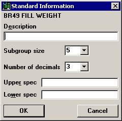 Click the name of the standard for which you are entering data, and then click OK. For help working with the list of standards, see Finding and selecting SPC standards.