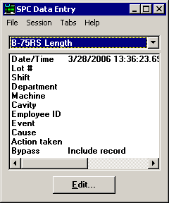 When you set a corrective action (event, cause, action taken) or bypass value, this value will be stored when you complete one data subgroup. After the subgroup is stored, the corrective action fields will be reset to empty values (as shown in the sample screen below), and the bypass will be reset to Include record. If you want to set corrective action or bypass values for multiple data subgroups, you must click the Traceability tab and set these values each time you begin a new subgroup.