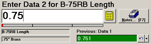 In this example, clicking Notes will allow you to enter a note for the standard B-75RB LENGTH.