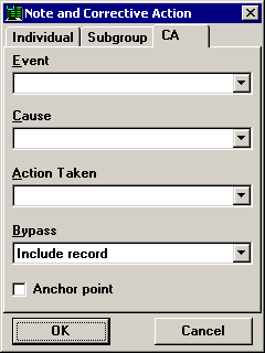 After finishing your note, you may add event, cause, action taken, bypass, or anchor point information to this data subgroup. In PDA mode, this information can be entered on the CA tab.