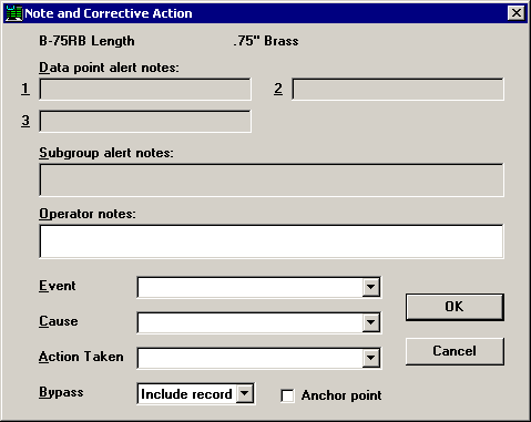 To close the Note and Corrective Action screen, click OK or press Enter.