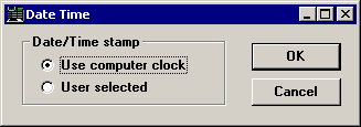 If you choose Use computer clock, the data record will be stamped with the date and time from the computer clock at the moment when the record was saved. If your template, planned session or stored session contains a date/time input box, manual changes to the date/time in the input box will be ignored.