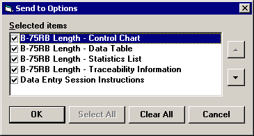 If your data entry session displays two or more tabs, then you can choose exactly which components to send, such as those shown in the following example. If your data entry session displays only one tab, then the contents of that tab will immediately be sent to the destination you specify.