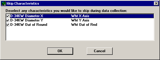 By clicking the Session menu and then clicking Skip Characteristics, you can choose to skip data entry for one or more characteristics that you would normally enter in this data entry session.