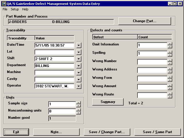 button to increase the sample size from 0 to 1, and you enter any defects on this order.