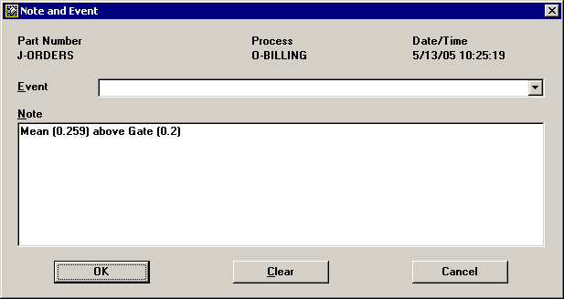 If the defect rate for this inspection record is too high, GainSeeker may display the Note and Event screen automatically.