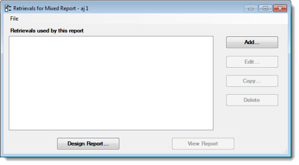 If you are creating a Mixed report, the Retrievals for Mixed Report dialog box displays: