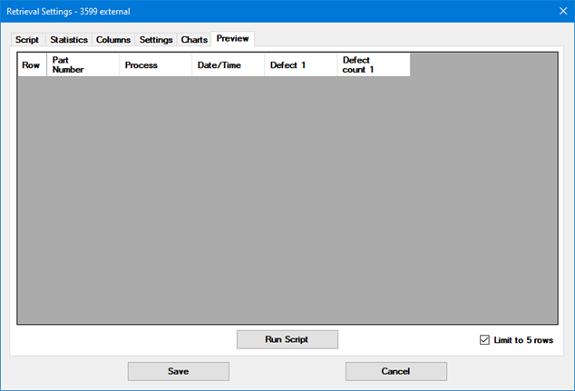 To only show the first five rows of data retrieved by the script or query, select the Limit to 5 rows check box.