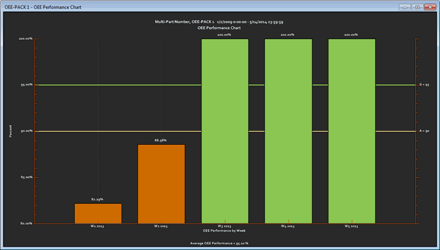 This example of an OEE Performance chart has a display Chart Skin applied.