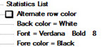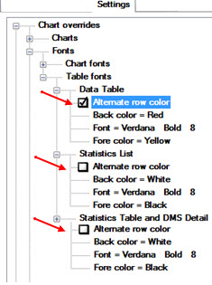 Chart Overrides | Fonts| Table fonts | Data Table [or Statistics List, or Statistics Table and DMS Detail] | Alternate Row color