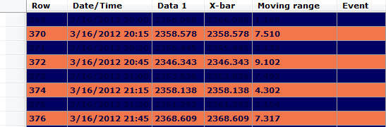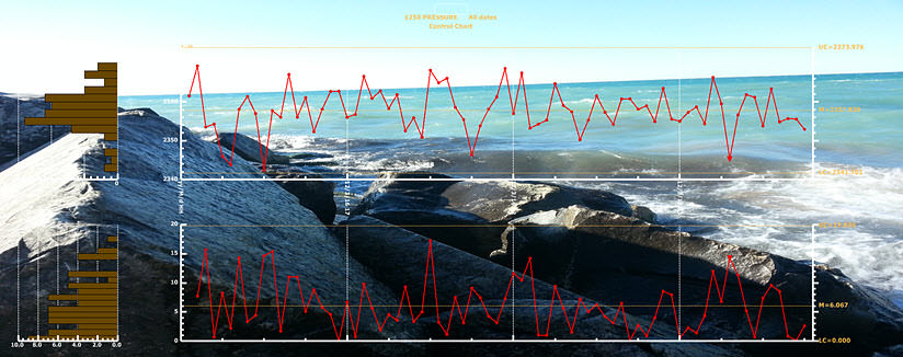 When you apply a chart skin to a chart (a Control chart, for example) and duplicate that chart into other chart types (Data table or Histogram, for example) with the same data, that skin is applied to all the chart types. Each chart type displays somewhat differently within the same chart skin theme.