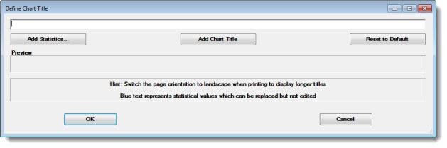 Each time you select a grid cell for edit, the Define Chart Title dialog opens. Use this dialog to select the statistic labels. See Using the Define Chart Title dialog for usage information.