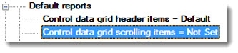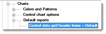 Chart overrides | Charts | Default reports | Control data grid header items =