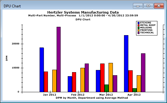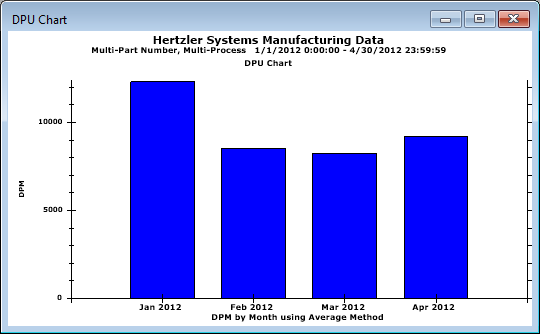The chart will always be displayed with bars (not lines), regardless of the Display bars for DPU and DPU Yield charts setting, and data brushing is not available. The bars will always be displayed as two-dimensional bars, regardless of the Bars drawn in 3D setting.