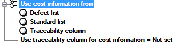 Select which traceability column to use when you select the Traceability column option for the Use cost information from setting.