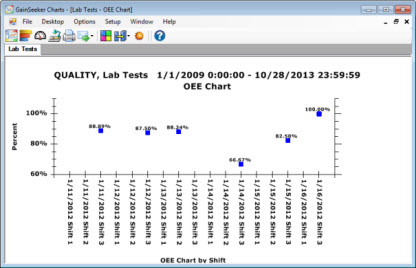 In this example, the data on an OEE chart is grouped by Shift: