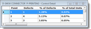 A Control Detail table displays data and traceability information of defects for any given point using a table format.