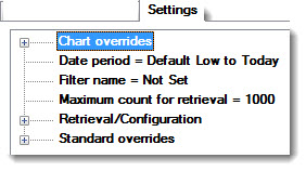 The Chart overrides node is located at the top level on the Settings tab