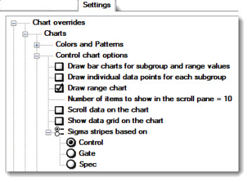 Note: Control chart settings and all other settings located in the Chart overrides node of the Settings dialog can be saved as a chart skin that you can apply to any charts. For more information, see Chart Skins
