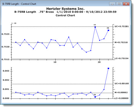 For either subgrouped or individuals data, a sigma chart can be displayed as the bottom chart.