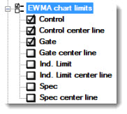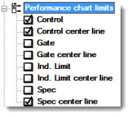 Displays these limits on a Performance chart. Click a checkbox to select it or to clear it. See Chart Limit options for descriptions of each option.