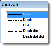 Double-click Line type = to open the Dash Style dialog. Click a style to select it. This can help differentiate lines set for limits on a chart.