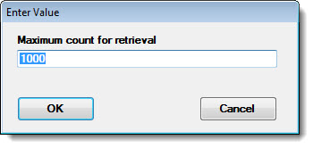Double-click Maximum count for retrieval to open the Enter Value dialog. Then, enter a numerical value in the text box to represent the maximum number of records to analyze for each standard.
