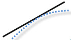 Data points plot by bending in an upward trend to the left of the line