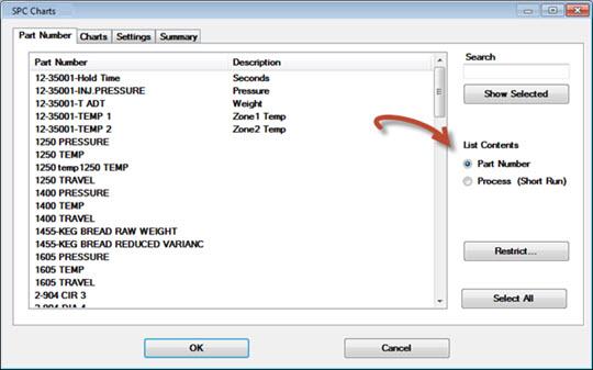 SPC Charts dialog to select multiple