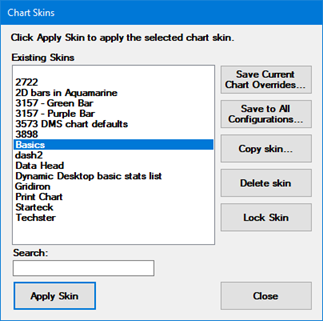 Click the name of the chart skin in the Existing Skins list that you want to apply to the current chart. Then click Apply Skin.