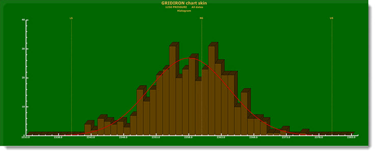 Example of the chart skin "Gridiron," one of the ready-to-apply chart skins included with GainSeeker Suite: