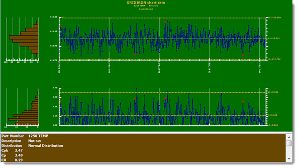 Fig. 1 shows a chart with the Print Chart skin applied and the same chart Fig. 2 with the more colorful Gridiron skin applied.