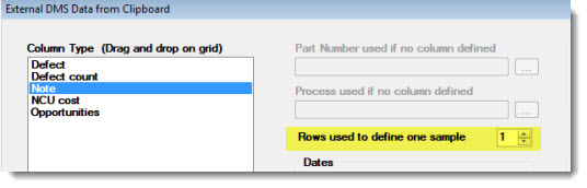 The External Data from Clipboard dialog lets you specify how many rows of data comprise one subgroup.