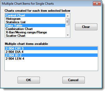 The Select Multiple chart Items for Single Charts dialog opens.