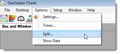 Click Options on the GainSeeker Charts menu bar. Then, click Split... on the list.