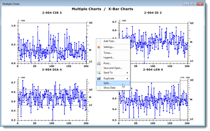 Right-click a summary chart window, and then click Split... on the right-click menu that displays.