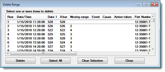 To delete all the selected records, click Delete on the Delete Range dialog. When prompted to delete the selected records, click Yes.