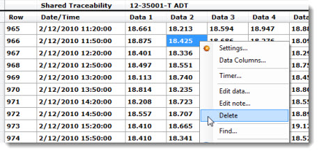 To delete one or more records (rows), right-click anywhere on a Data Table, and then click Delete Range... on the menu that displays, or you can click the Options menu on the GainSeeker Charts window, and then click Delete Range... on the list that displays.