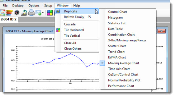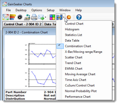 You can select a new type of chart that is in the same chart category as the original chart you created (for example, a single or multiple data chart and an SPC or DMS retrieval), so the list of available chart options will vary depending on the chart type.