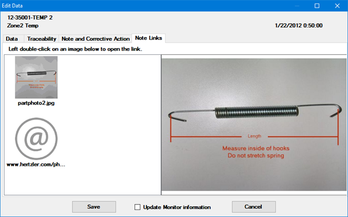 After clicking the Save button to save your changes, editing this data record again will display a new Note Links tab with a thumbnail image for each file or web address in the note. You can double-click the thumbnail image to open that file or web address in the program that Windows associates with that file type.