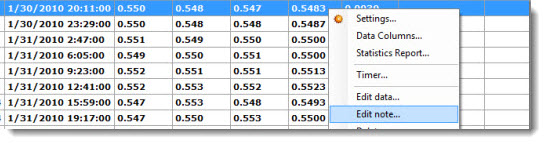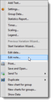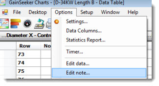 Click a record (row) you want to edit. Then, click Options on the GainSeeker Charts window menu bar. Click Edit note... on the list.